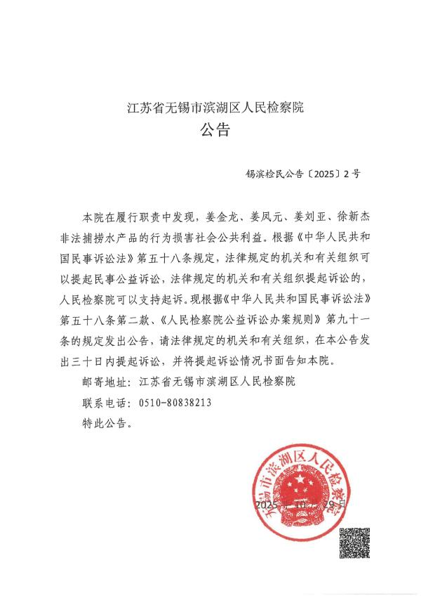 非法捕捞水产品的行为损害社会公共利益。根据《中华人民共和国民事诉讼法》第五十八条规定,法律规定的机关和有关组织可以提起民事公益诉讼,法律规定的机关和有关组织提起诉讼的,人民检察院可以支持起诉。现根据《中华人民共和国民事诉讼法》第五十八条第二款、《人民检察院公益诉讼办案规则》第九十一条的规定发出公告,请法律规定的机关和有关组织,在本公告发出三十日内提起诉讼,并将提起诉讼情况书面告知本院。