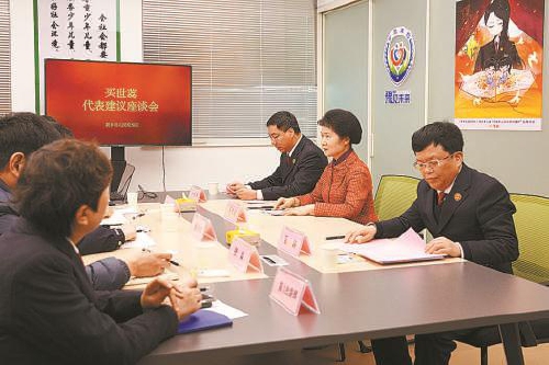 买世蕊代表(右二)在河南省新乡市检察院“‘豫’见未来·买世蕊小荷工作站”,同检察、公安、教育等“小荷”成员单位的相关负责人研讨未成年人合法权益保护工作。
