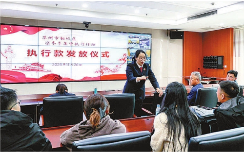 “真没想到这笔钱还能追回来!”“本来我们已经绝望了,这笔钱真是解了我们家的燃眉之急啊……”2025年11月26日,江苏省苏州市相城区检察院联合区法院、公安机关举行退赔款集中发还仪式,现场向20余名被害人代表发还被诈骗的款项。