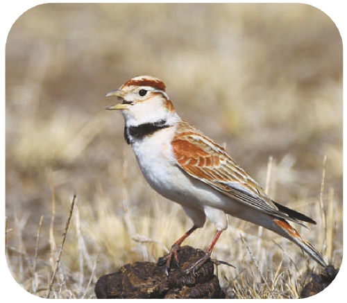 蒙古百灵,国家二级保护野生动物,体长17厘米至22厘米,栖息于草原、半荒漠等开阔地区,尤其喜欢草本植物生长茂密、湿润的草原地区。 (文字来源于“国家重点保护野生动物名录”微信小程序)