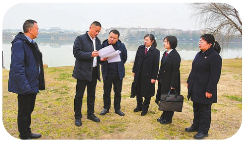 2025年1月,全国人大代表殷翠平(左二)应检察机关邀请,到湖南省宁乡市灰汤镇对一起污水直排行政公益诉讼案整改情况进行“回头看”。