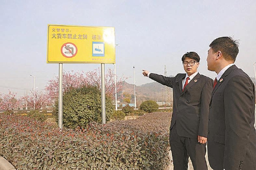 2026年1月29日,湖北省南漳县检察院干警前往朱家湾路口“回头看”,路口设立的交通警示牌醒目,地面标线清晰。