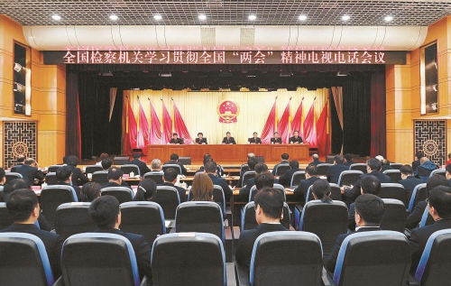 3月16日,最高人民检察院召开电视电话会议,深入学习贯彻习近平总书记在全国两会期间的重要讲话精神和全国两会精神,部署检察机关贯彻落实举措。 本报全媒体记者闫昭摄