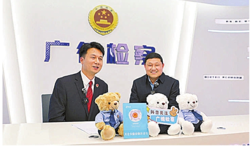 日前,杨广奇代表(右)走进“安徽检察”“广德检察”直播间,同网友交流互动。
