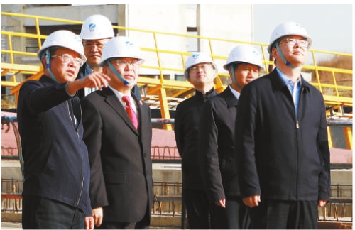 李贵合代表(左一)与江苏省南通市检察机关检察官共同走访中铁十四局集团装备有限公司,了解临港产业发展诉求。
