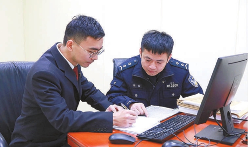 2023年3月,承办检察官与法警研究开展调查取证工作。