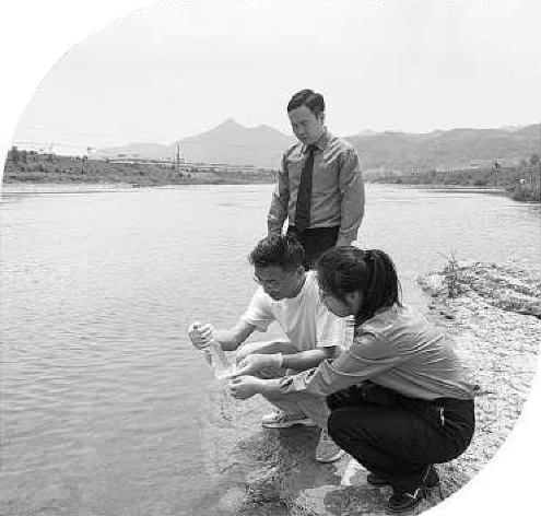 2023年5月,陕西省安康市汉滨区检察院检察官邀请环保组织专业人员对汉江水质进行取样检测。