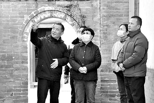 马红丽(前排左二)到中共西北野战军第一次代表会议旧址调研检察机关在保护革命文物方面的具体做法和工作成效。