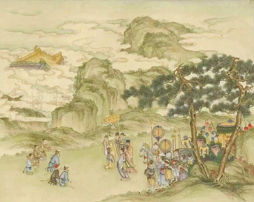 相传有一天,大禹乘坐华丽的马车、在侍从的前呼后拥下外出巡游,一路遍览壮美河山,视察风土人情,心情颇为畅快。在马车行驶到苍梧地界时,大禹迎面碰上一群囚犯,他们披枷戴锁,被负责押送的官吏用棍棒驱使着,个个痛苦不堪。大禹脸色突变,连忙走下马车,详细询问他们身犯何罪,以致受此刑罚。在听完一个囚犯的回答后,大禹抚摩着他的背,忍不住失声痛哭。大禹的随从们大为不解,问道:“他们违理悖道,受今日之苦完全是罪有应得,大王为何感伤至此?”大禹擦着眼泪,讲出一番道理:“昔日在尧舜做天下共主的时候,百姓皆以尧舜之心为心,故而安居乐业,刑措而不用;如今寡人做了一国之君,百姓却只知道按照自己内心的想法行事,于是祸乱并起,陷刑者众。这岂不令我痛心疾首?”