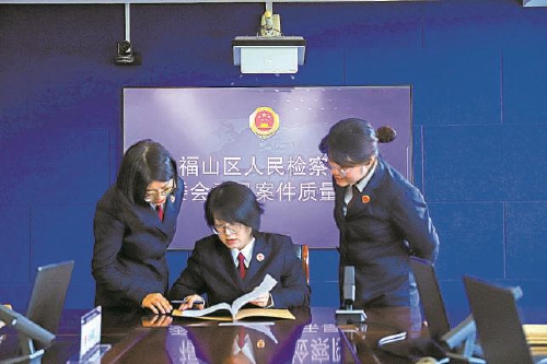 今年4月,山东省烟台市福山区检察院检委会委员针对案件质量评查中存在的问题与办案人员进行沟通交流。
