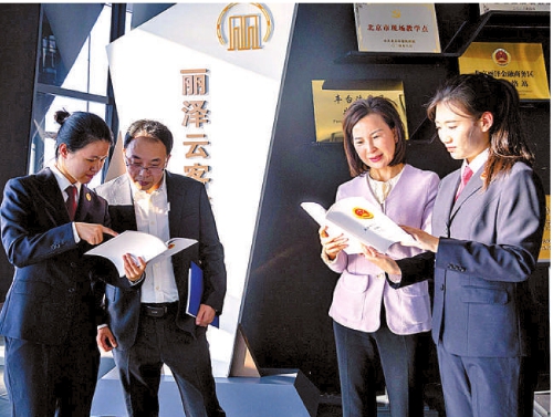 近日,北京市丰台区检察院、丽泽金融商务区管委会联合举办“服务保障丽泽金融商务区核心区建设北京国际法商融合示范区起步区”推进会暨金融法治教育基地揭牌与特色检察现场教学点授牌仪式。基地的成立,标志着专业化、规范化、体系化的金融检察服务与预防机制在丽泽金融商务区正式落地生根。该院将重点把基地打造为金融法治教育的示范平台、金融风险防控的协作平台、金融人才培育的创新平台。基地揭牌当天,该院发布了金融检察白皮书,梳理近五年来区域金融犯罪态势并总结金融检察履职成效。此外,该院还被授牌为北京市检察机关特色检察现场教学点。图为该院检察干警现场为与会人员讲解金融检察白皮书内容。